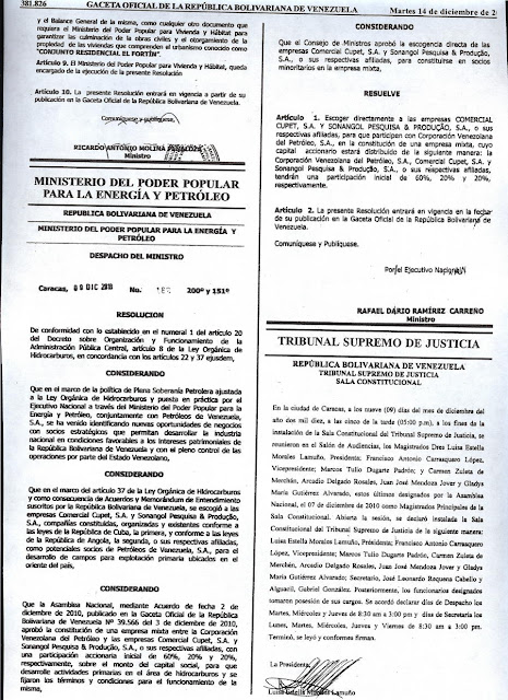 TEXTO de las Resoluciones Números 033, 034, 035, 036 y 037 del 13DIC2010 sobre Juntas Administradoras de 5 Obras Inmobiliarias